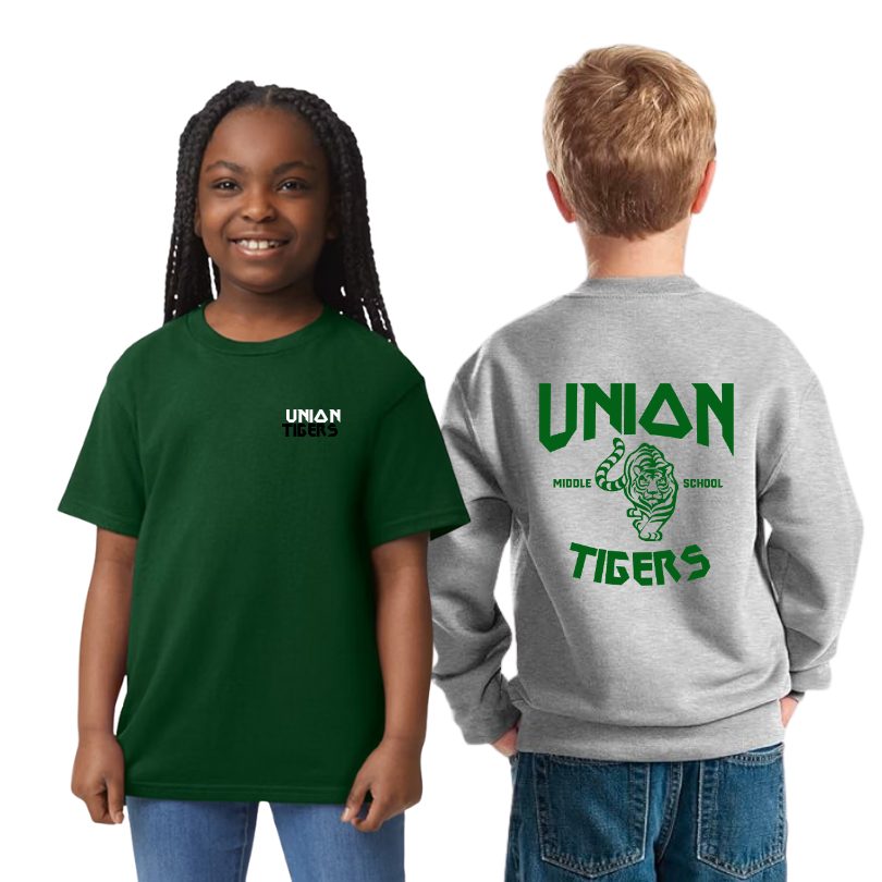 Purchase your Union Middle School Spirit Wear and show off your school spirit! Choose between hooded sweatshirts, crewneck t-shirts, crewneck sweatshirts, sweatpants, flannel bottoms and super cozy oversized blankets with hoods. Available in a range of sizes and styles. Proceeds from the sales are donated to UMS.